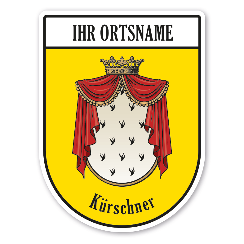 Maibaumschild Kürschner mit Zunftnamen, Ortsnamen oder Ihrem Wunschtext. Unsere Maibaumschilder und Zunftwappen sind in Ihrer Symbolik mittelalterlichen oder neueren Ausführungen der Zunftzeichen einzelner Handwerksgilden nachempfunden. Da die Handwerkswappen der einzelnen Berufsstände je nach Stadt, Land oder Zeitepoche stark variieren können, haben wir uns bei der grafischen Umsetzung auf allgemein gebräuchliche Abbildungen der Werkzeuge und Werkzeugzusammenstellungen konzentriert. Weiterhin wurden einzelne Zunftzeichen um neuere Symbole oder Werkzeuge ergänzt, um auch neuzeitlichen Berufen gerecht zu werden. Unsere Maibaumschilder zur Brauchtumspflege aus deutscher Fertigung sind langlebig, außerordentlich stabil und somit wahre Schmückstücke für jeden Maibaum.
