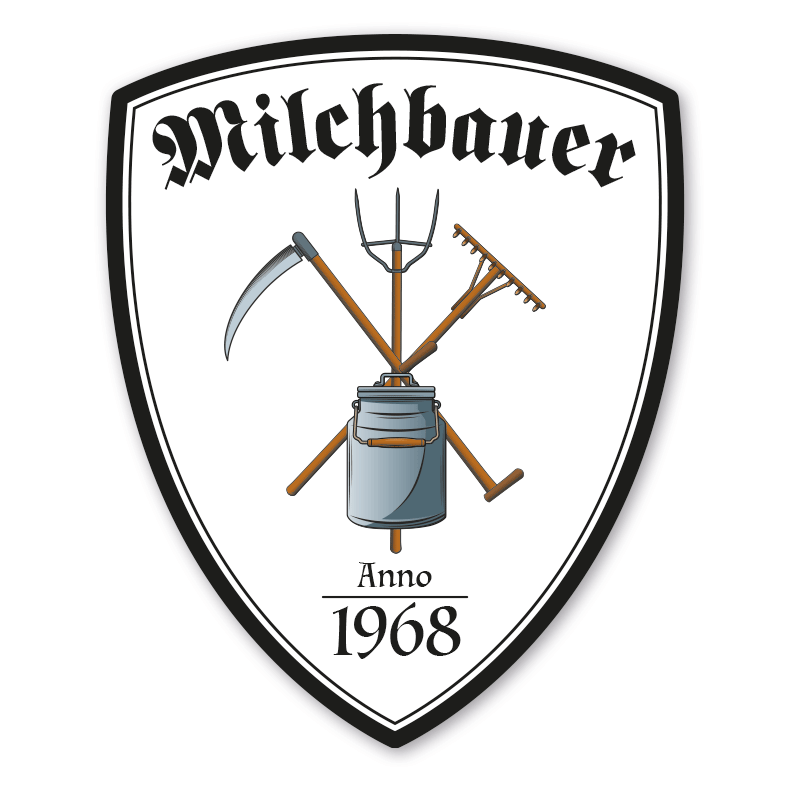 Maibaumschild / Zunftschild Milchbauer - Landwirt mit Zunftnamen, Gründungsjahr oder Ihrem Wunschtext. Unsere Maibaumschilder und Zunftwappen sind in Ihrer Symbolik mittelalterlichen oder neueren Ausführungen der Zunftzeichen einzelner Handwerksgilden nachempfunden. Da die Handwerkswappen der einzelnen Berufsstände je nach Stadt, Land oder Zeitepoche stark variieren können, haben wir uns bei der grafischen Umsetzung auf allgemein gebräuchliche Abbildungen der Werkzeuge und Werkzeugzusammenstellungen konzentriert. Weiterhin wurden einzelne Zunftzeichen um neuere Symbole oder Werkzeuge ergänzt, um auch neuzeitlichen Berufen gerecht zu werden. Unsere Maibaumschilder zur Brauchtumspflege aus deutscher Fertigung sind langlebig, außerordentlich stabil und somit wahre Schmückstücke für jeden Maibaum.