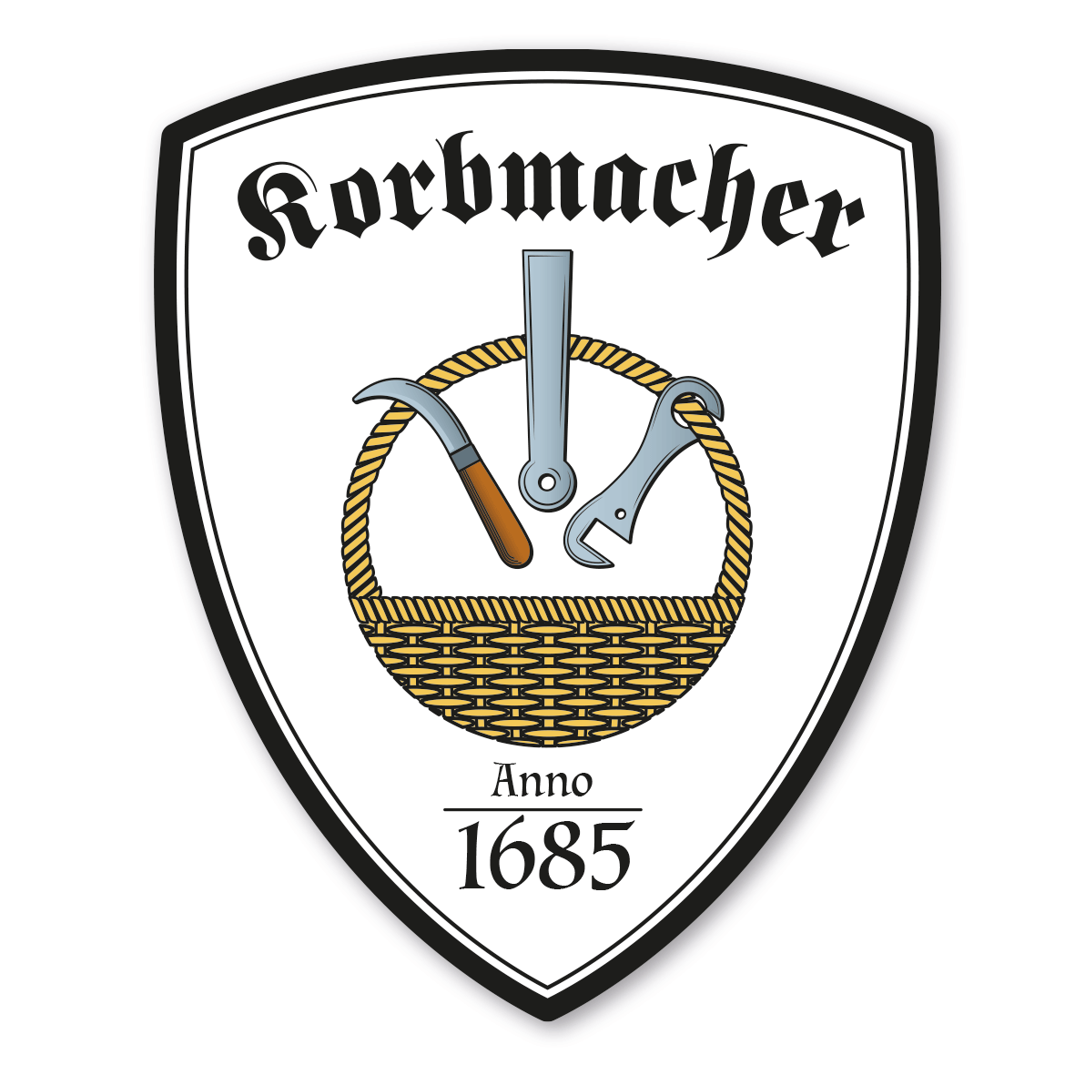 Maibaumschild / Zunftschild Korbmacher - Korbflechter mit Zunftnamen, Gründungsjahr oder Ihrem Wunschtext. Unsere Maibaumschilder und Zunftwappen sind in Ihrer Symbolik mittelalterlichen oder neueren Ausführungen der Zunftzeichen einzelner Handwerksgilden nachempfunden. Da die Handwerkswappen der einzelnen Berufsstände je nach Stadt, Land oder Zeitepoche stark variieren können, haben wir uns bei der grafischen Umsetzung auf allgemein gebräuchliche Abbildungen der Werkzeuge und Werkzeugzusammenstellungen konzentriert. Weiterhin wurden einzelne Zunftzeichen um neuere Symbole oder Werkzeuge ergänzt, um auch neuzeitlichen Berufen gerecht zu werden. Unsere Maibaumschilder zur Brauchtumspflege aus deutscher Fertigung sind langlebig, außerordentlich stabil und somit wahre Schmückstücke für jeden Maibaum.