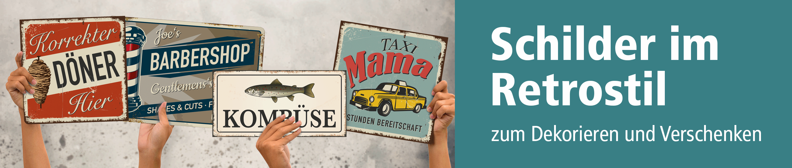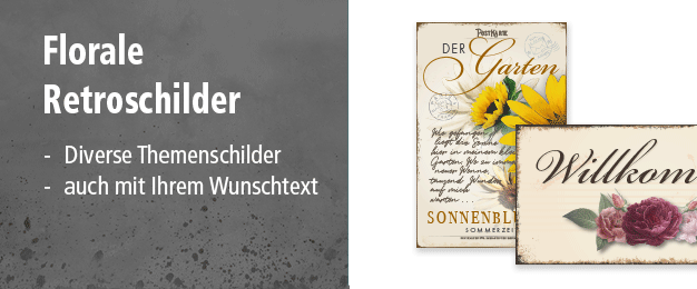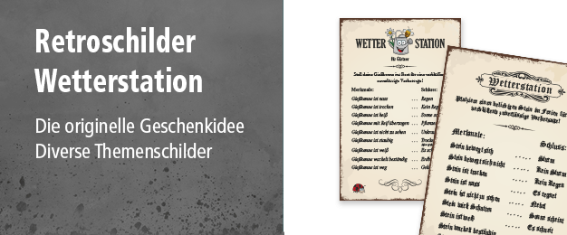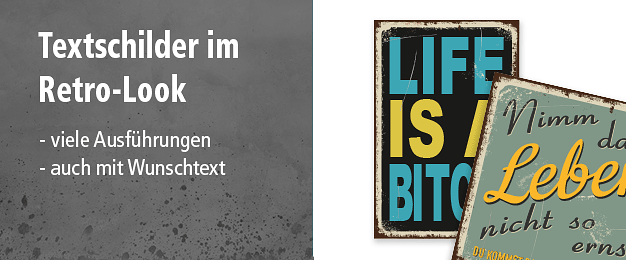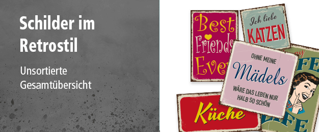 Retroschilder und Schilder im Vintage-Look als Standardartikel oder mit Wunschtext