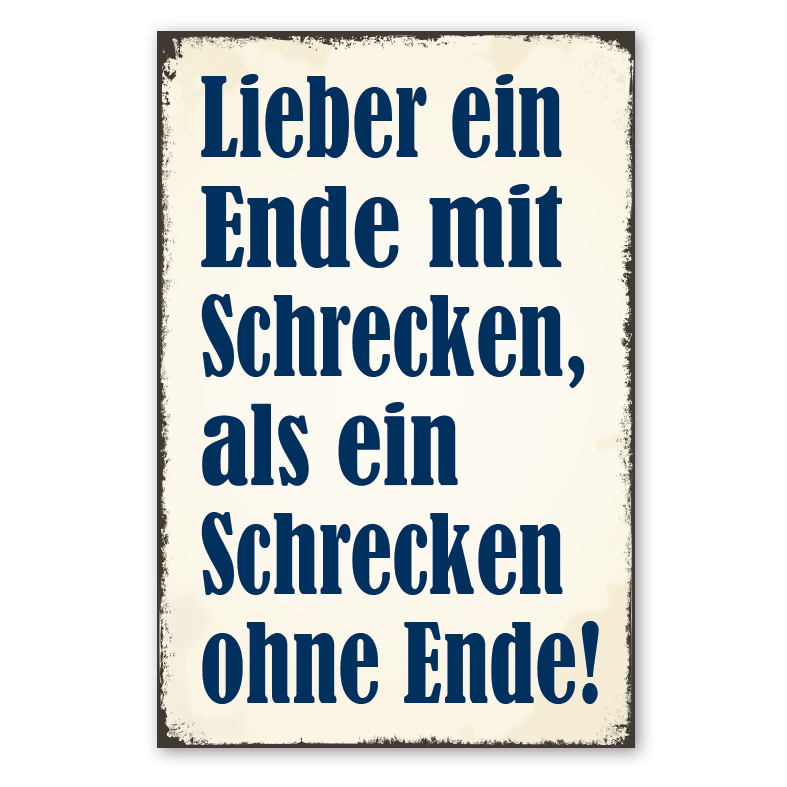Retro Schild Lieber ein Ende mit Schrecken, als ein Schrecken ohne Ende
