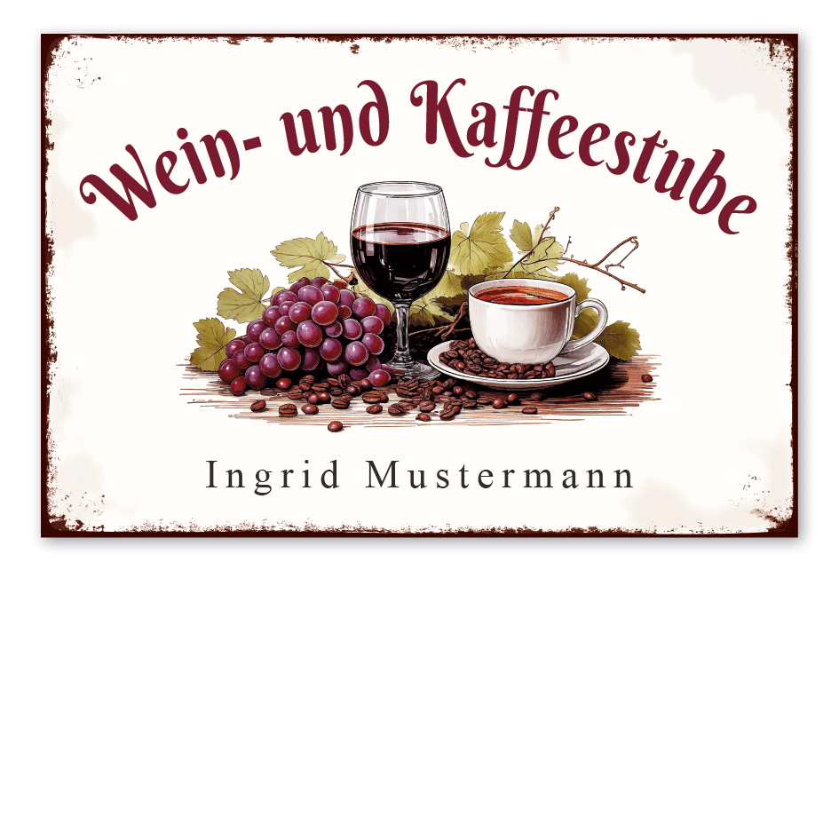Retro Schild Wein- und Kaffeestube - mit Ihrem Wunschnamen