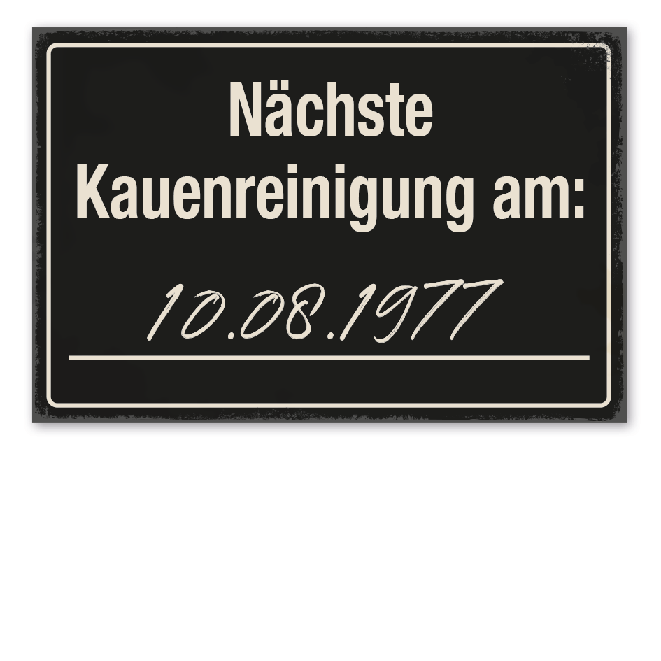 Merkmale des Bergbauschildes Nächste Kauenreinigung am - mit oder ohne Datum - in Retro-Ausführung - VIN-3081: