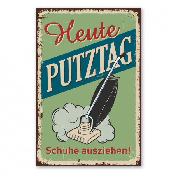 Merkmale des Retro-Schildes / Vintage-Schildes Heute Putztag - Schuhe ausziehen - VIN-59
