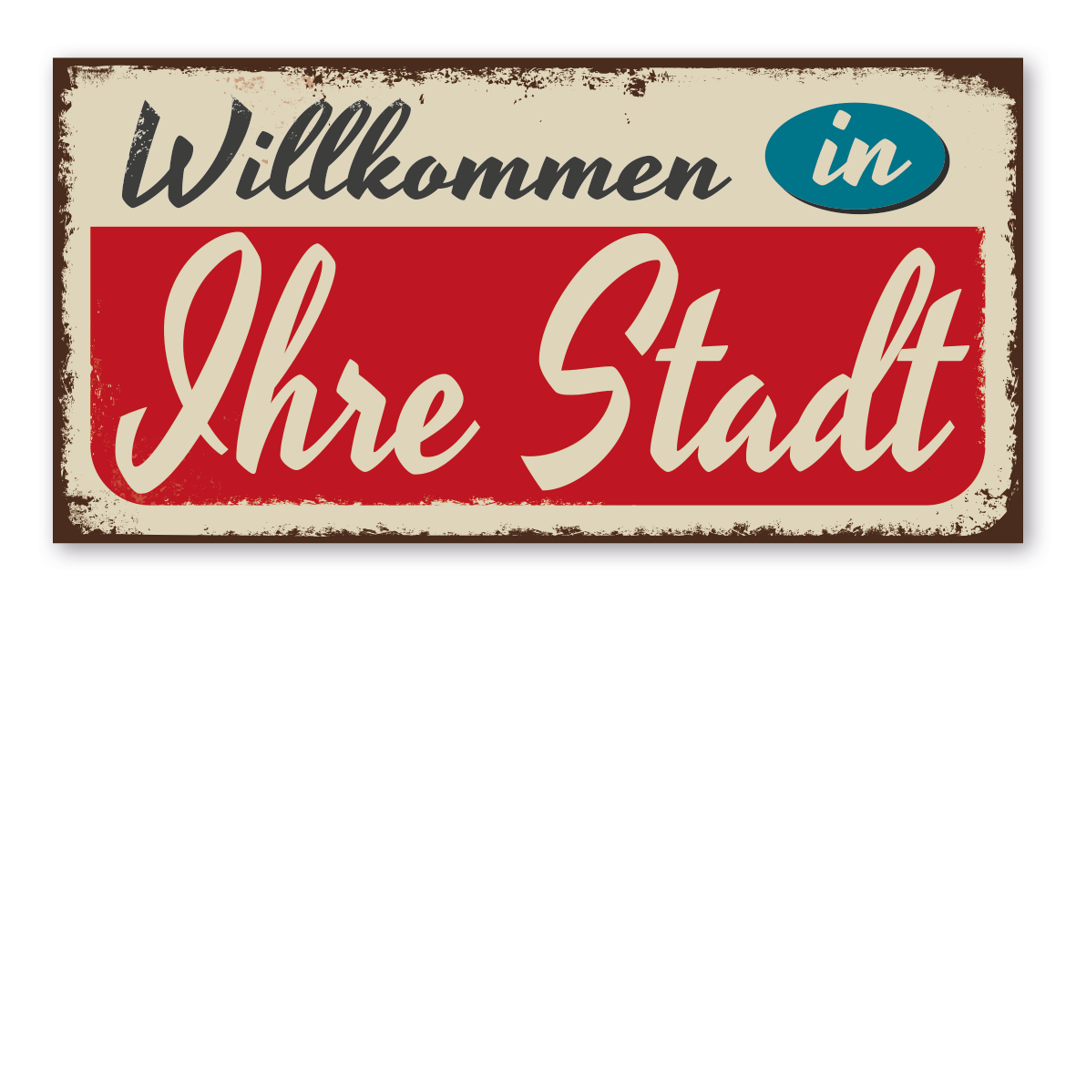 Retroschild / Vintage-Stadtschild Willkommen - mit Ihrem individuellen Stadtnamen