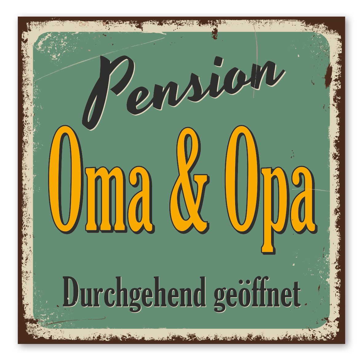 Merkmale des Retro-Schildes / Vintage-Schild Pension Oma und Opa - durchgehend geöffnet - VIN-321: