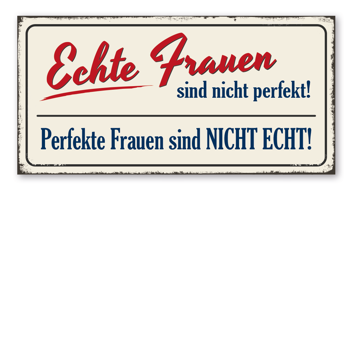 Retroschild / Vintage-Textschild Echte Frauen sind nicht perfekt. Perfekte Frauen sind nicht echt