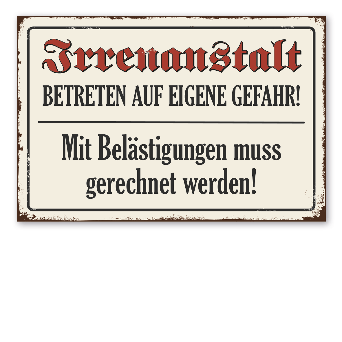 Retroschild / Vintage-Schild Irrenanstalt - Betreten auf eigene Gefahr - Mit Belästigungen muss gerechnet werden