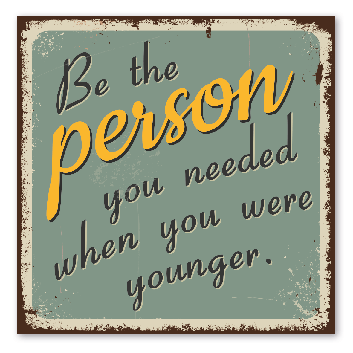 Merkmale des Retro-Schildes / Vintage-Spruchschildes Be the person you needed when you were younger - VIN-641: