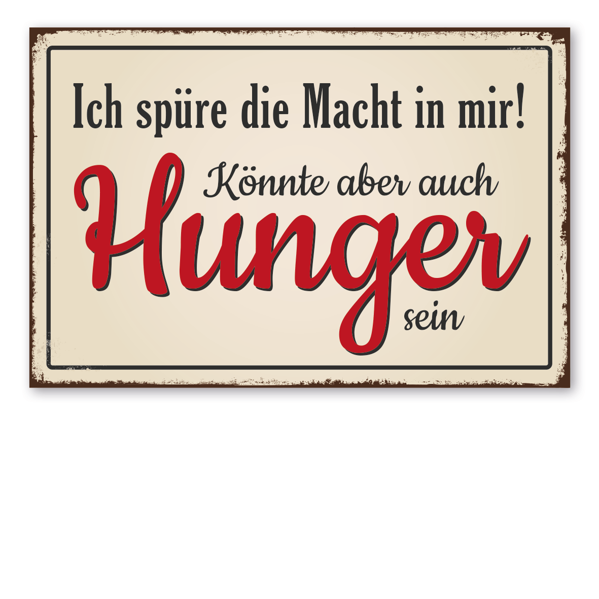 Retroschild / Vintage-Schild Ich spüre die Macht in mir! Könnte aber auch Hunger sein