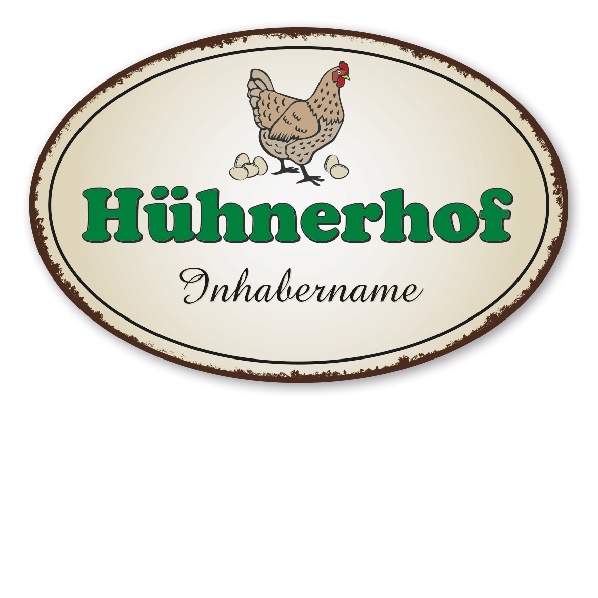 Merkmale des Verkaufsschildes / Hofschildes Hühnerhof - mit Ihrem Namen - VIN-718: