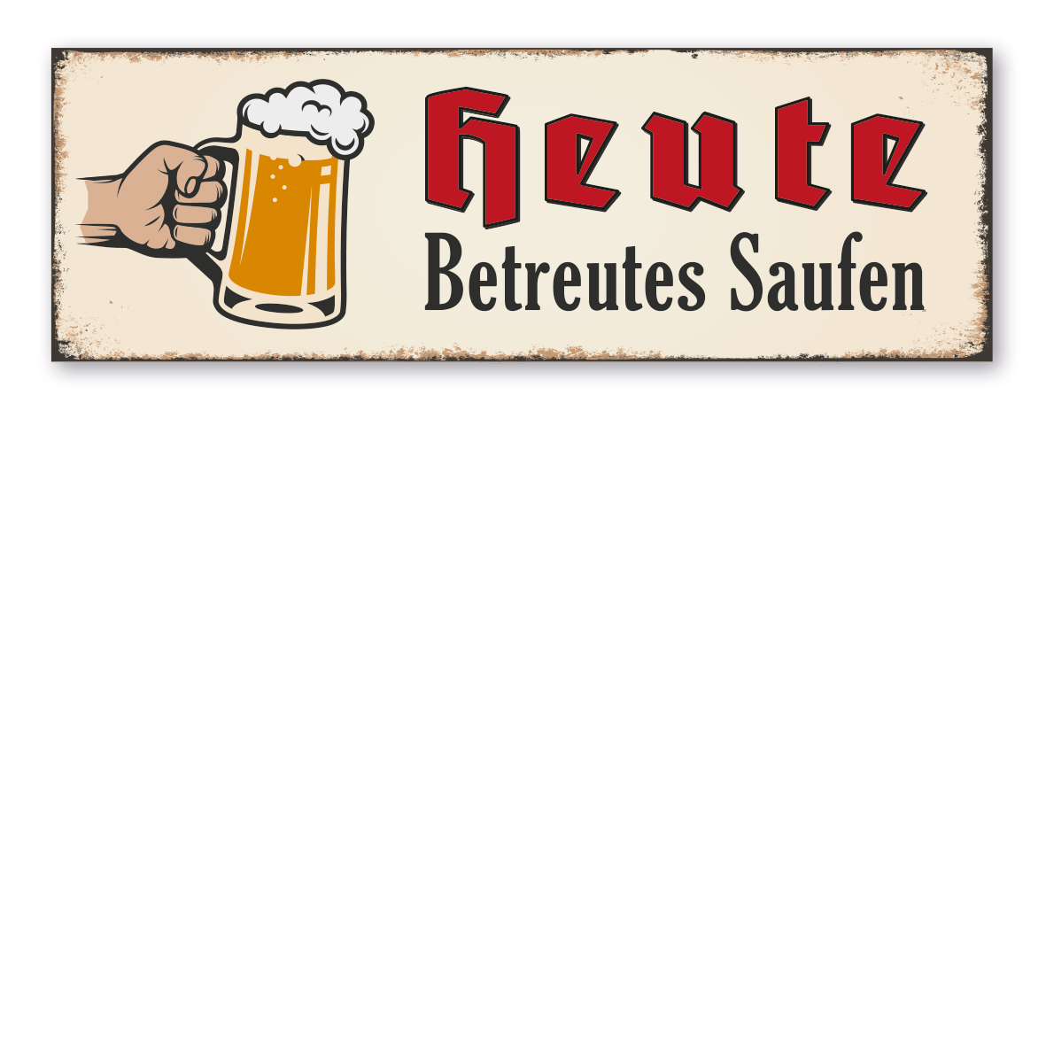 Retroschild / Vintage-Schild Heute betreutes Saufen - mit Bierkrug