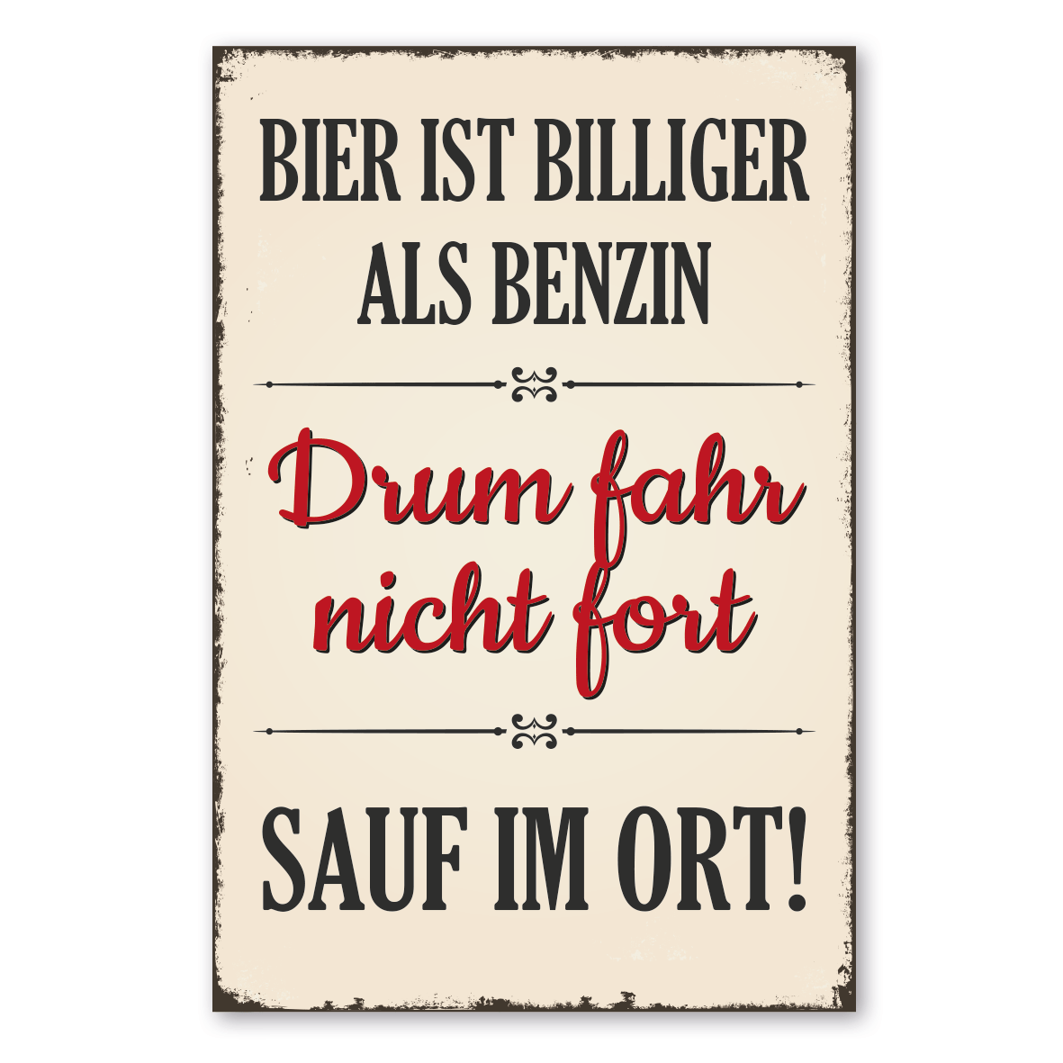 Merkmale des Retro Schildes / Vintage Schildes Bier ist billiger als Benzin. Drum fahr nicht fort - sauf im Ort - VIN-847: