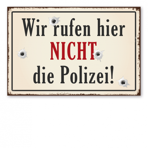 Merkmale des Retro Schildes / Vintage Schildes Wir rufen hier nicht die Polizei - VIN-877: