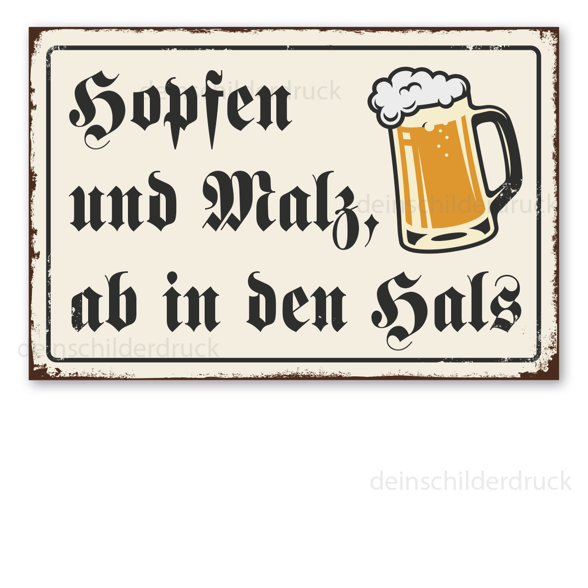 Merkmale des Retro Schildes / Vintage Schildes Hopfen und Malz, ab in den Hals - mit Bierkrug - VIN-901: