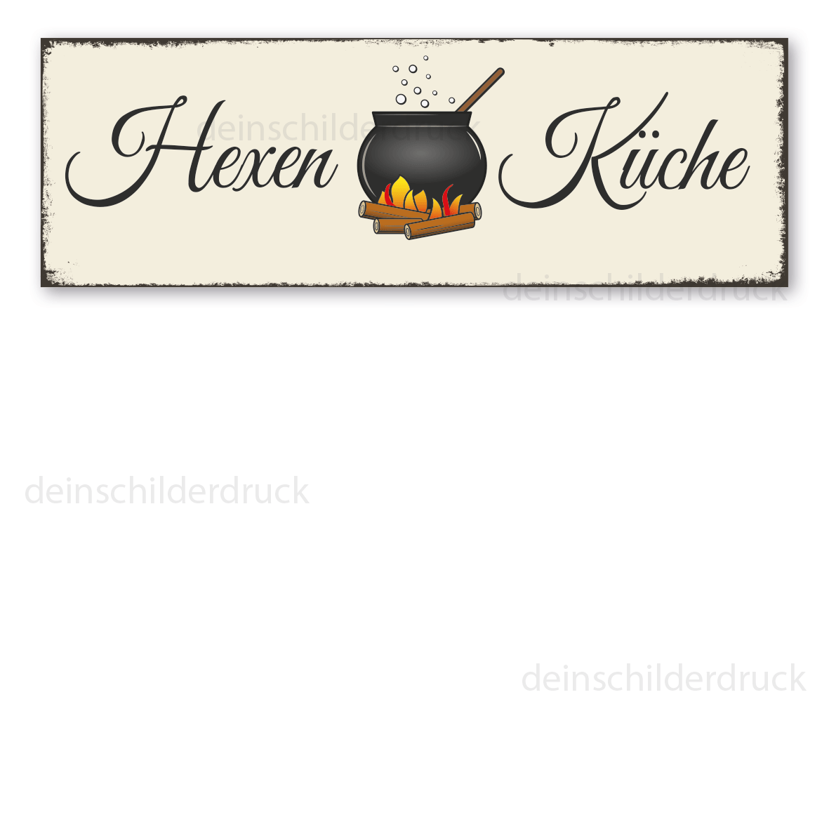 Retroschild Hexenküche - mit Kessel für Ihren Lieblingsort. Diese Schilder im Retro- oder Vintage-Look sind in zahlreichen Ausführungen erhältlich, mit Motiven oder nur Textinhalten, die je nach Artikel individuallisiert werden können. Die Patina (Kratzer und Beschädigungen) ist nicht echt, sondern nur aufgedruckt, dennoch wirken diese Schilder alt, so als wären sie vor Jahrzehnten produziert worden. Unsere hochwertigen Retro- und Vintage-Schilder werden aus 2 mm Hartaluminium gefertigt, sie sind wetterfest und in vielen Größen erhältlich. Verschenken Sie diese dekorativen Schilder als Standardartikel oder mit angepaßten Textinhalten zum Geburtstag, zur Hochzeit, oder beschenken Sie sich selbst. Den Möglichkeiten sind kaum Grenzen gesetzt.