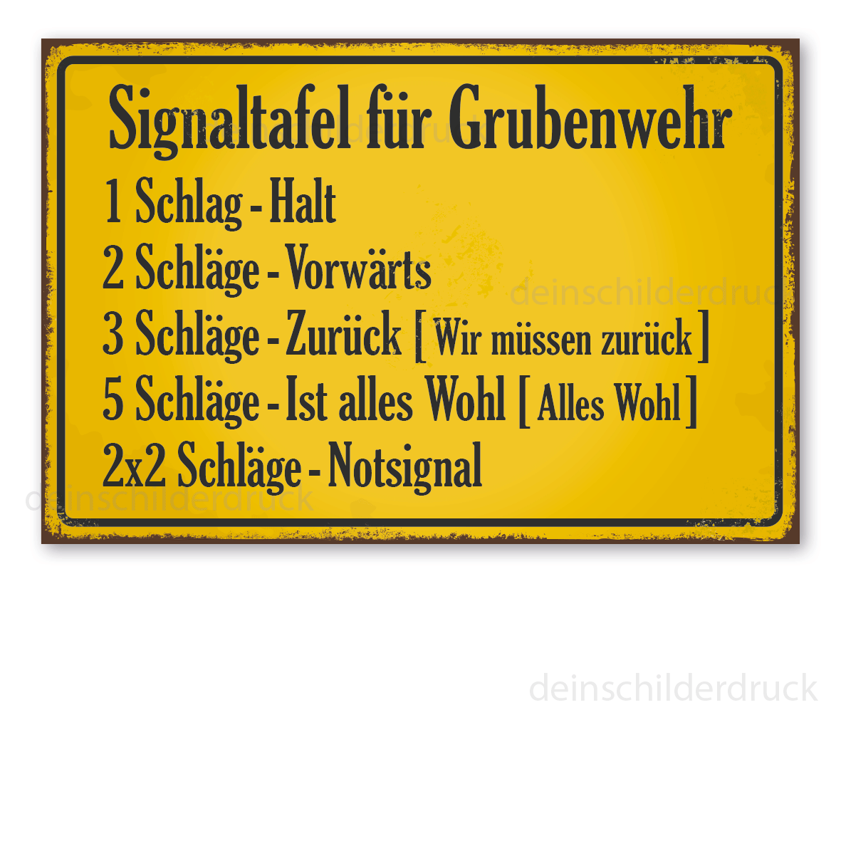 Merkmale des Bergbauschildes Signaltafel für Grubenwehr - in Retro-Ausführung - VIN-978:
