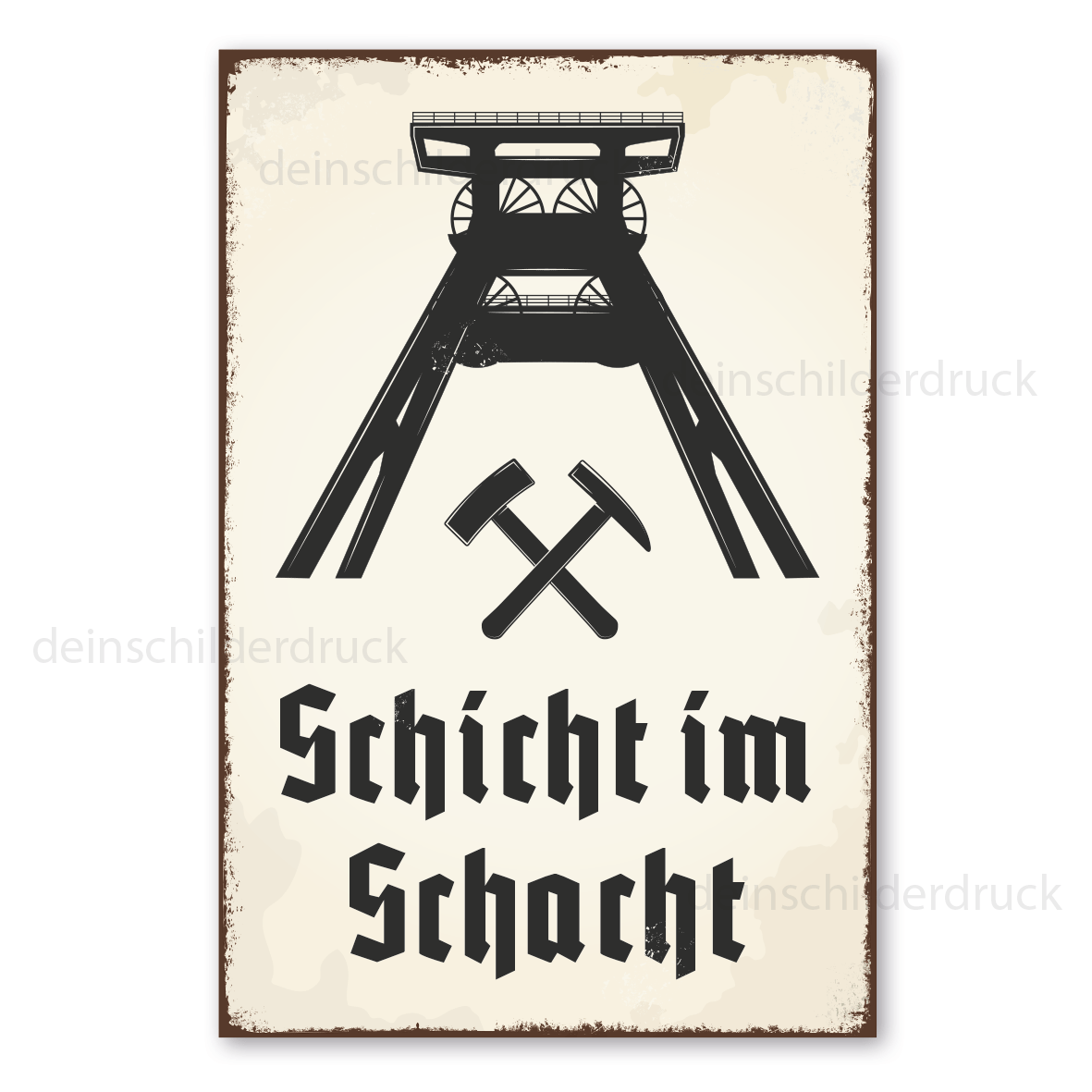 Merkmale des Bergbauschildes Schicht im Schacht - mit Förderturm - in Retro-Ausführung - VIN-998: