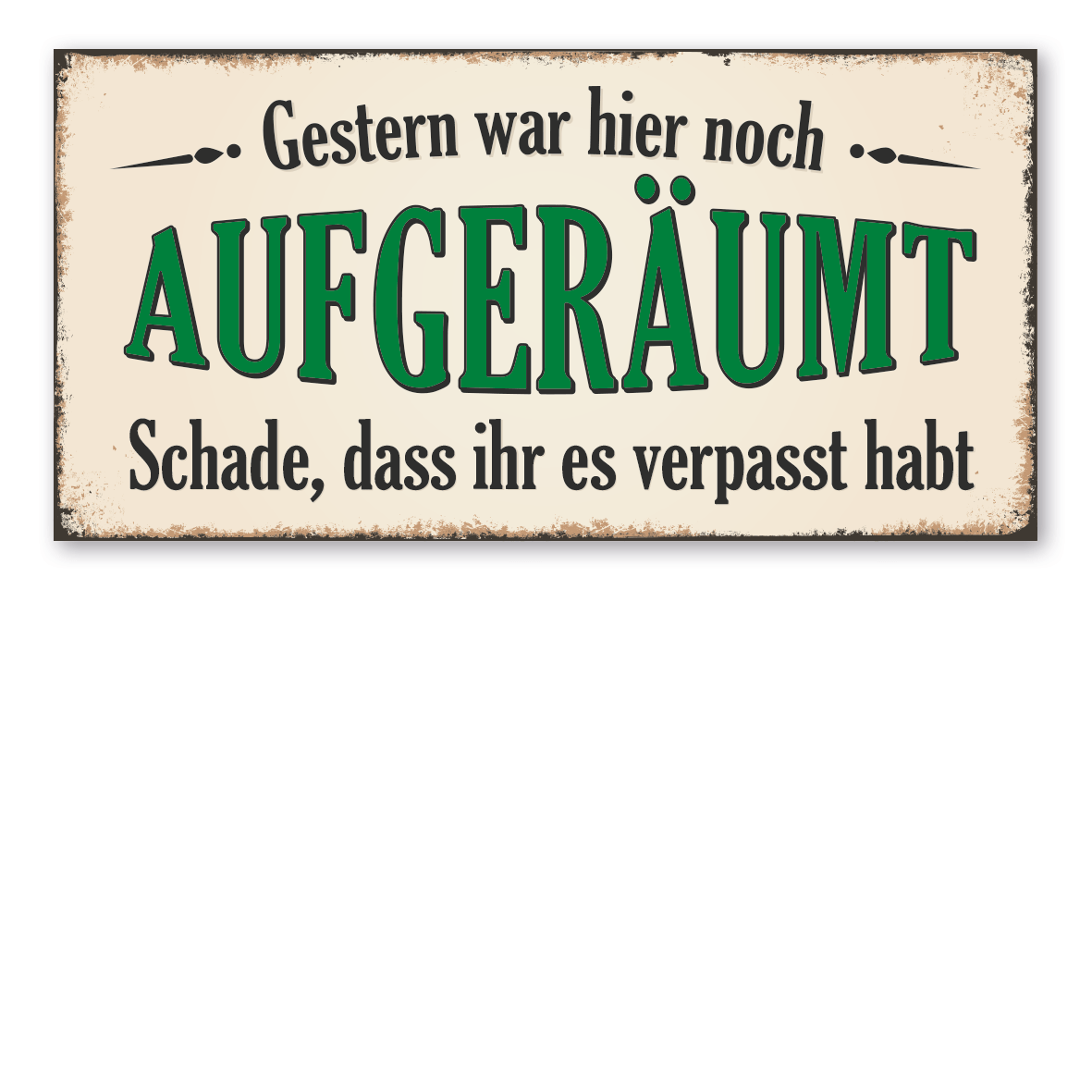 Merkmale des Retro-Schildes / Vintage-Spruchschildes Gestern war hier noch aufgeräumt – Schade, dass ihr es verpasst habt - VIN-1013: