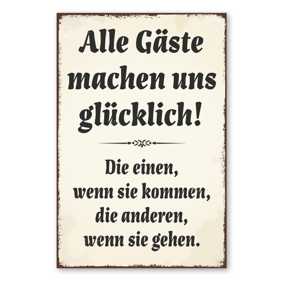 Retro Schild Alle Gäste machen uns glücklich. Die einen, wenn sie kommen, die anderen, wenn sie gehen