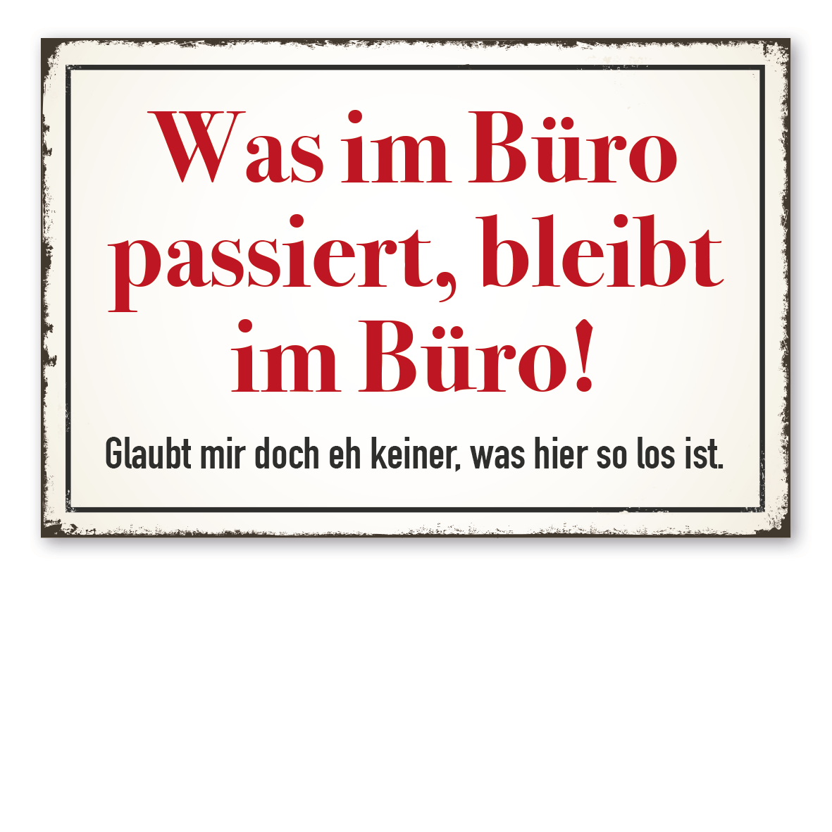 Retro Büroschild Was im Büro passiert, bleibt im Büro. Glaubt mir doch eh keiner, was hier los ist