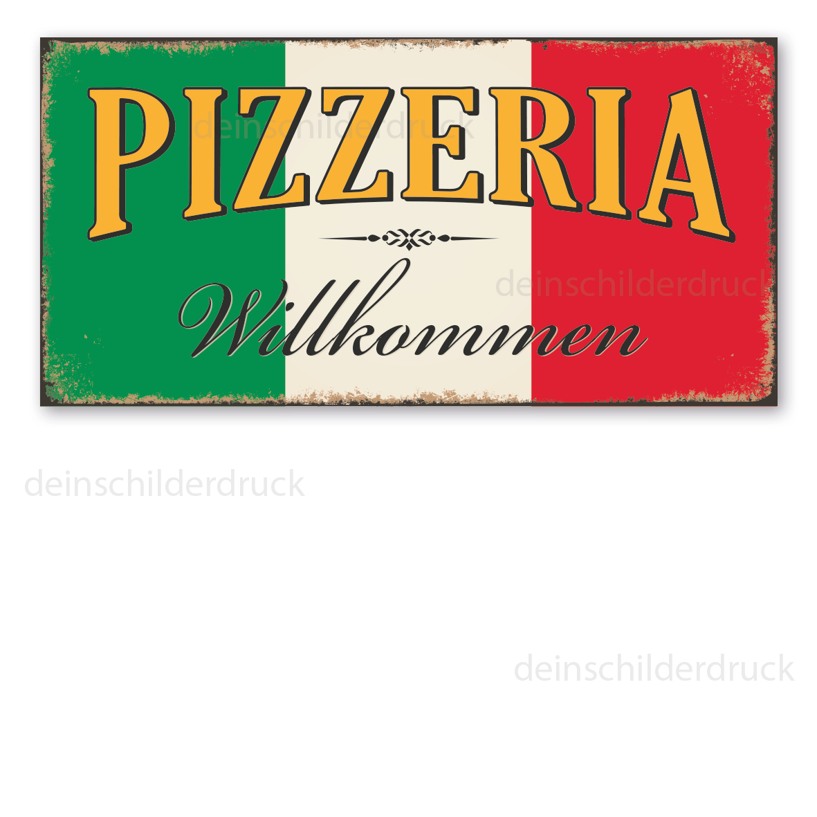 Retro Schild Pizzeria - Willkommen