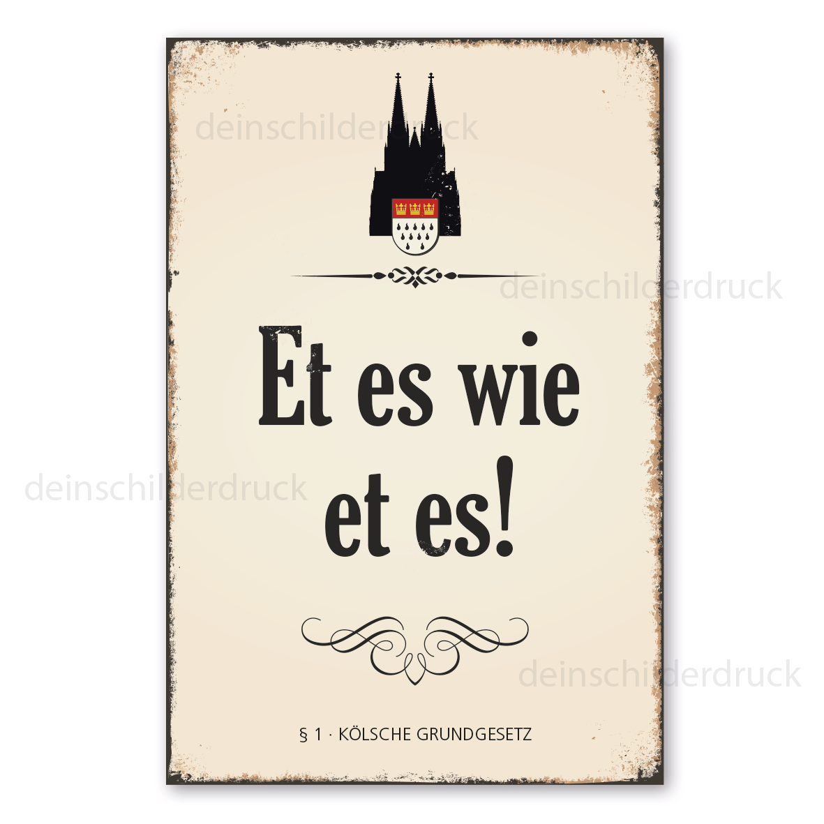 Merkmale des Retro-Schildes / Vintage-Schildes Kölsche Grundgesetz - § 1 - Et es wie et es - VIN-1070: