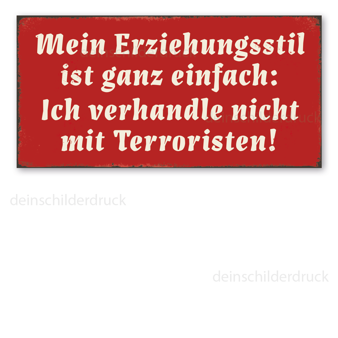 Retroschild / Vintage-Schild Mein Erziehungsstil ist ganz einfach - Ich verhandle nicht mit Terroristen