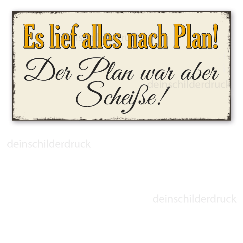 Merkmale des Retro-Schildes / Vintage-Schildes Es lief alles nach Plan. Der Plan war aber scheiße - VIN-1120: