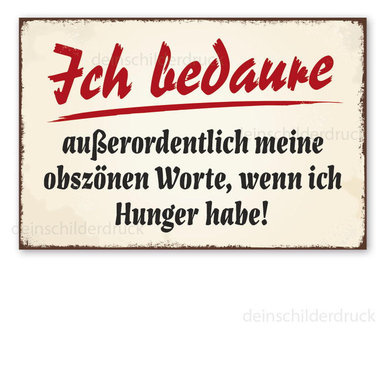 Produktinformationen "Retro Schild Ich bedaure außerordentlich meine obszönen Worte, wenn ich Hunger habe"