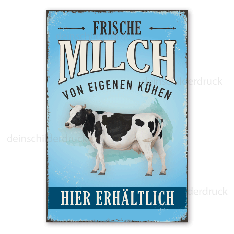Retro Hofschild Frische Milch von eigenen Kühen - Hier erhältlich - mit Kuh