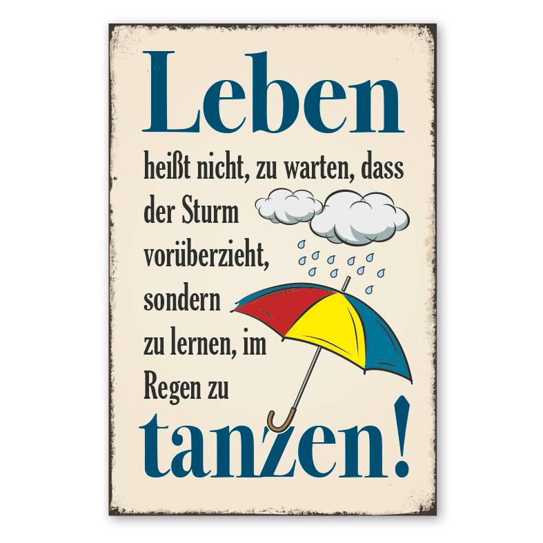 Produktinformationen "Retro Schild Leben heißt nicht, zu warten, dass der Sturm vorüberzieht, sondern zu lernen, im Regen zu tanzen"