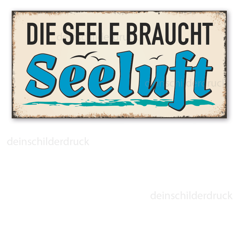 Merkmale des Retro-Schildes / Vintage-Schildes Die Seele braucht Seeluft - VIN-1277: