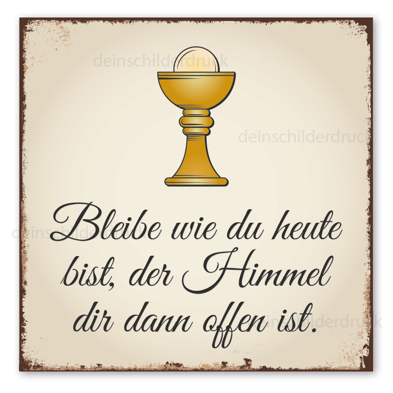 Schild für Kommunion - Bleibe wie du heute bist, der Himmel dir dann offen ist – mit Hostienkelch (Ziborium) – Retroausführung