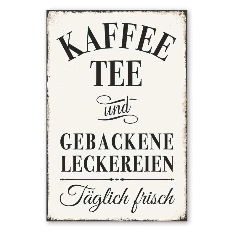 Merkmale des Retro Schildes / Vintage-Schildes Kaffee, Tee und gebackene Leckereien - Täglich frisch - VIN-1400: