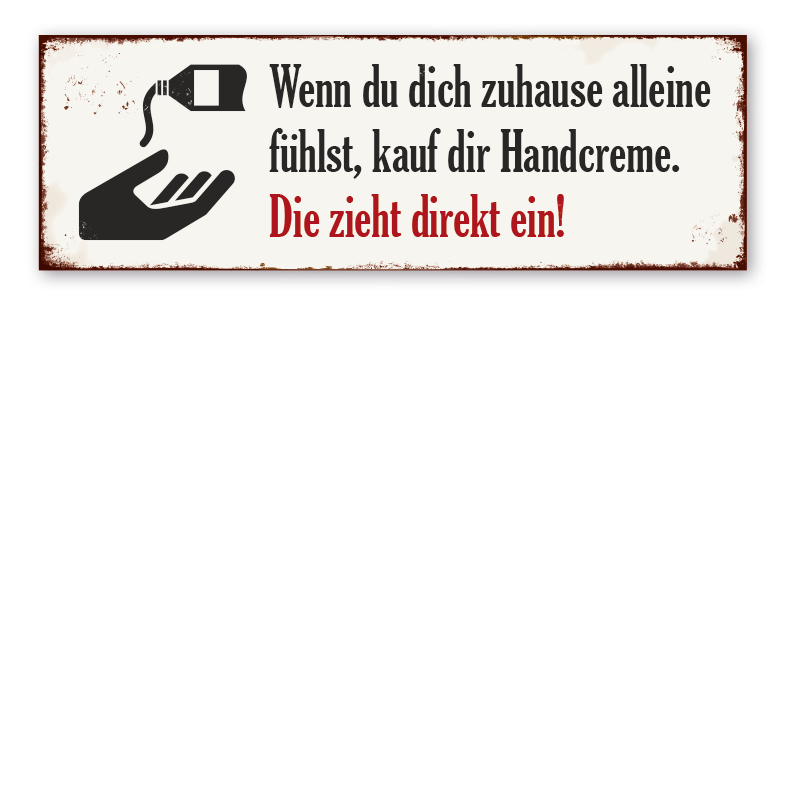 Merkmale des Retro-Schildes / Vintage-Schildes Wenn du dich zuhause alleine fühlst, kauf dir Handcreme. Die zieht direkt ein - VIN-1533: