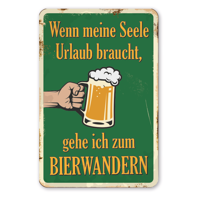Retroschild / Vintage-Schild Wenn meine Seele Urlaub braucht, gehe ich zum Bierwandern
