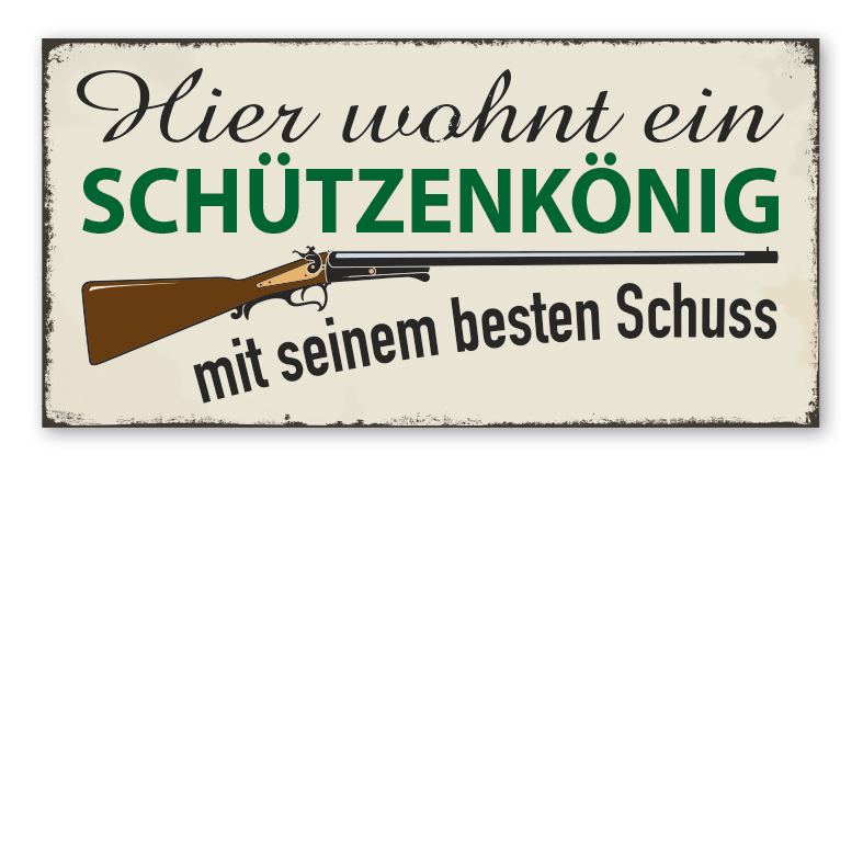 Merkmale des Retro-Schildes Hier wohnt ein Schützenkönig mit seinem besten Schuss - VIN-1577: