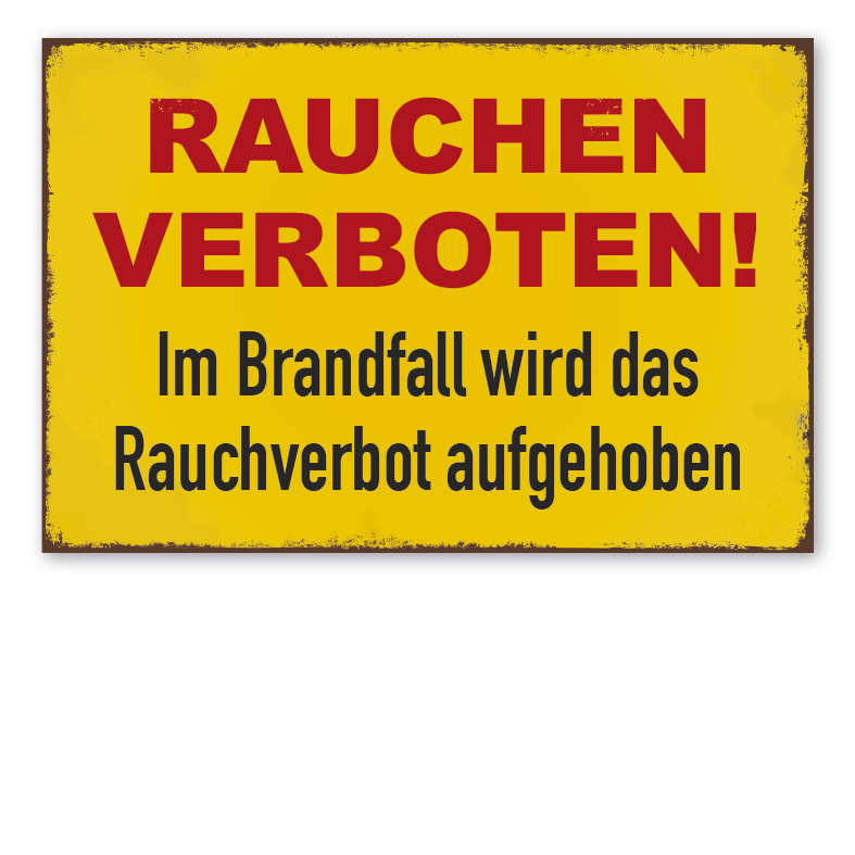 Retro Schild Rauchen verboten. Im Brandfall wird das Rauchverbot aufgehoben