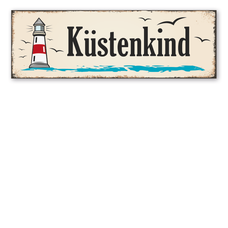 Merkmale des Retro-Schildes / Vintage-Schildes Küstenkind - mit Leuchtturm - VIN-1624: