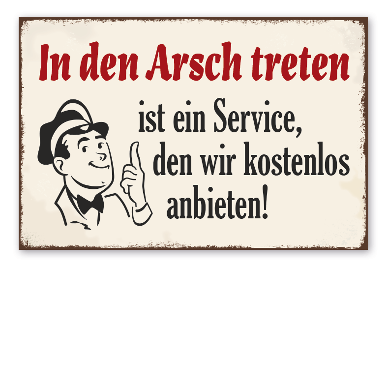 Retro Schild In den Arsch treten ist ein Service, den wir kostenlos anbieten