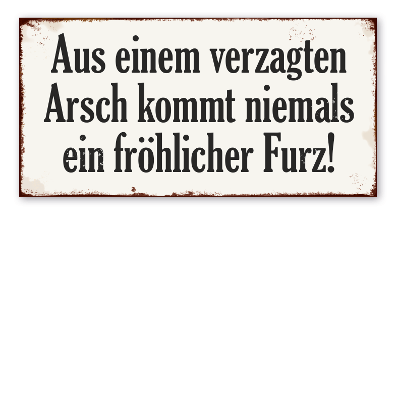 Retro Schild Aus einem verzagten Arsch kommt niemals ein fröhlicher Furz!