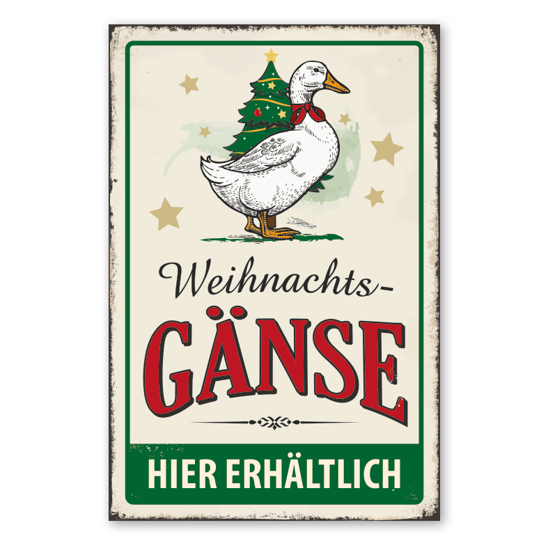 Merkmale des Retro Schildes / Vintage-Schildes Weihnachtsgänse - Hier erhältlich - Hofschild - VIN-1728: