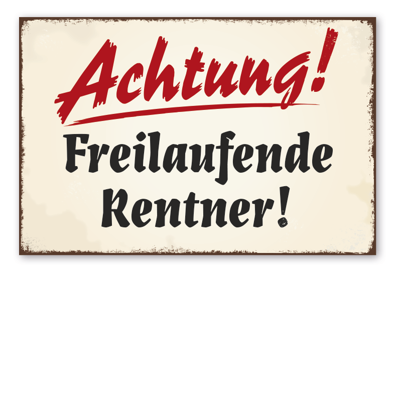 Retro Schild Achtung! Freilaufende Rentner
