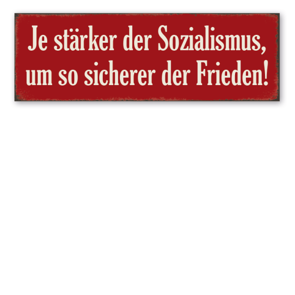 Merkmale des Retro-Schildes Je stärker der Sozialismus, um so sicherer der Frieden - VIN-1882: