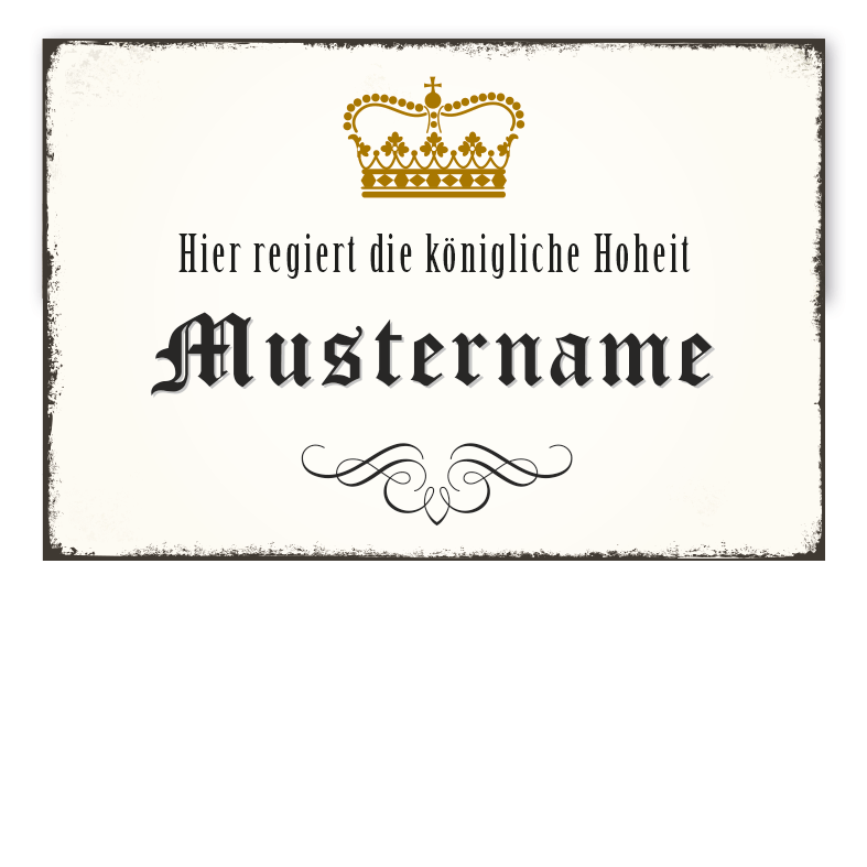 Produktinformationen "Retro Schild Hier regiert die königliche Hoheit - mit Ihrem Namenseindruck"