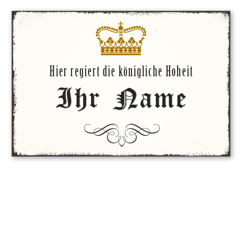 Retro Schild Hier regiert die königliche Hoheit - mit Ihrem Namenseindruck