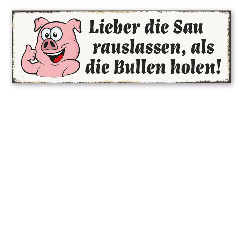 Merkmale des Retro-Schildes Lieber die Sau rauslassen als die Bullen holen - VIN-2061: