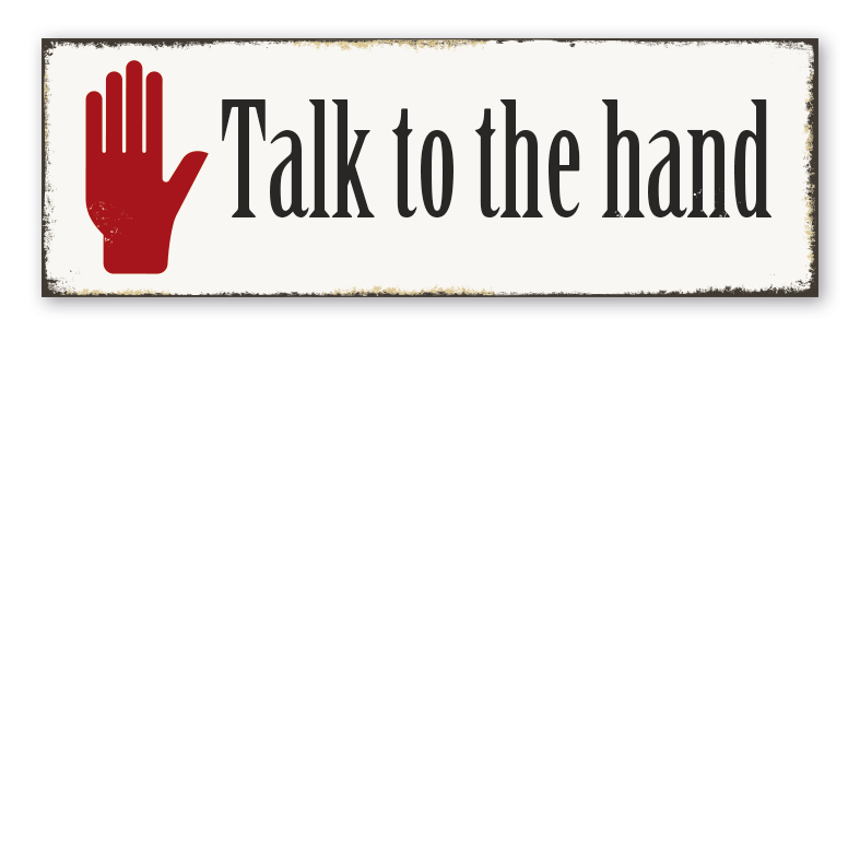 Merkmale des Retro-Schildes Talk to the hand - VIN-2079: