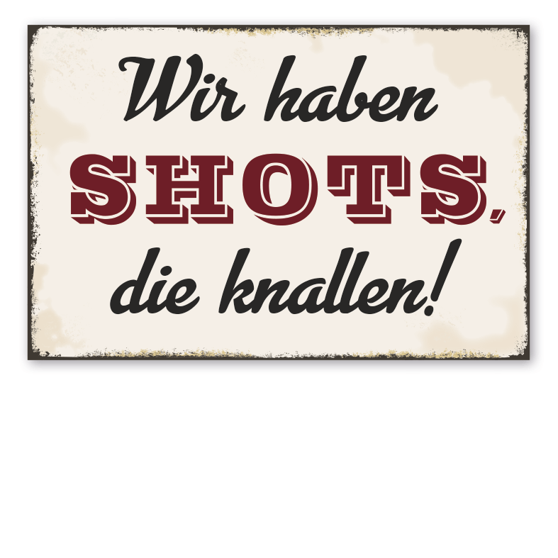 Retro Schild Wir haben Shots, die knallen